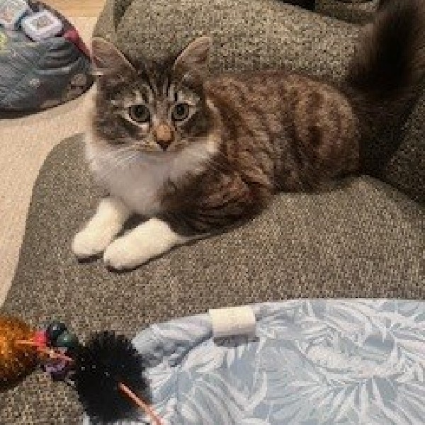 He was very chilled the first few days lapping up pats and even cuddles from me and my daughter, but he has been getting more energy he’s been enjoying more time playing with my son who’s become his personalized toy maker!