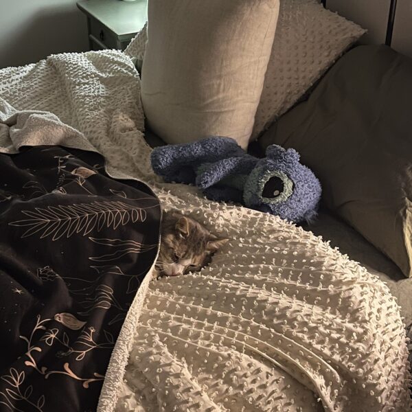 Heās the sweetest little angel bean. All of his hair has finally grown back, heās put on a fair bit of weight, his fur is happy and healthy and heās a content little man.